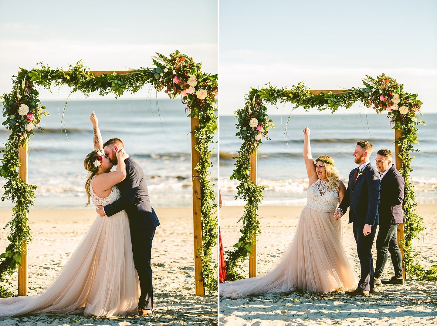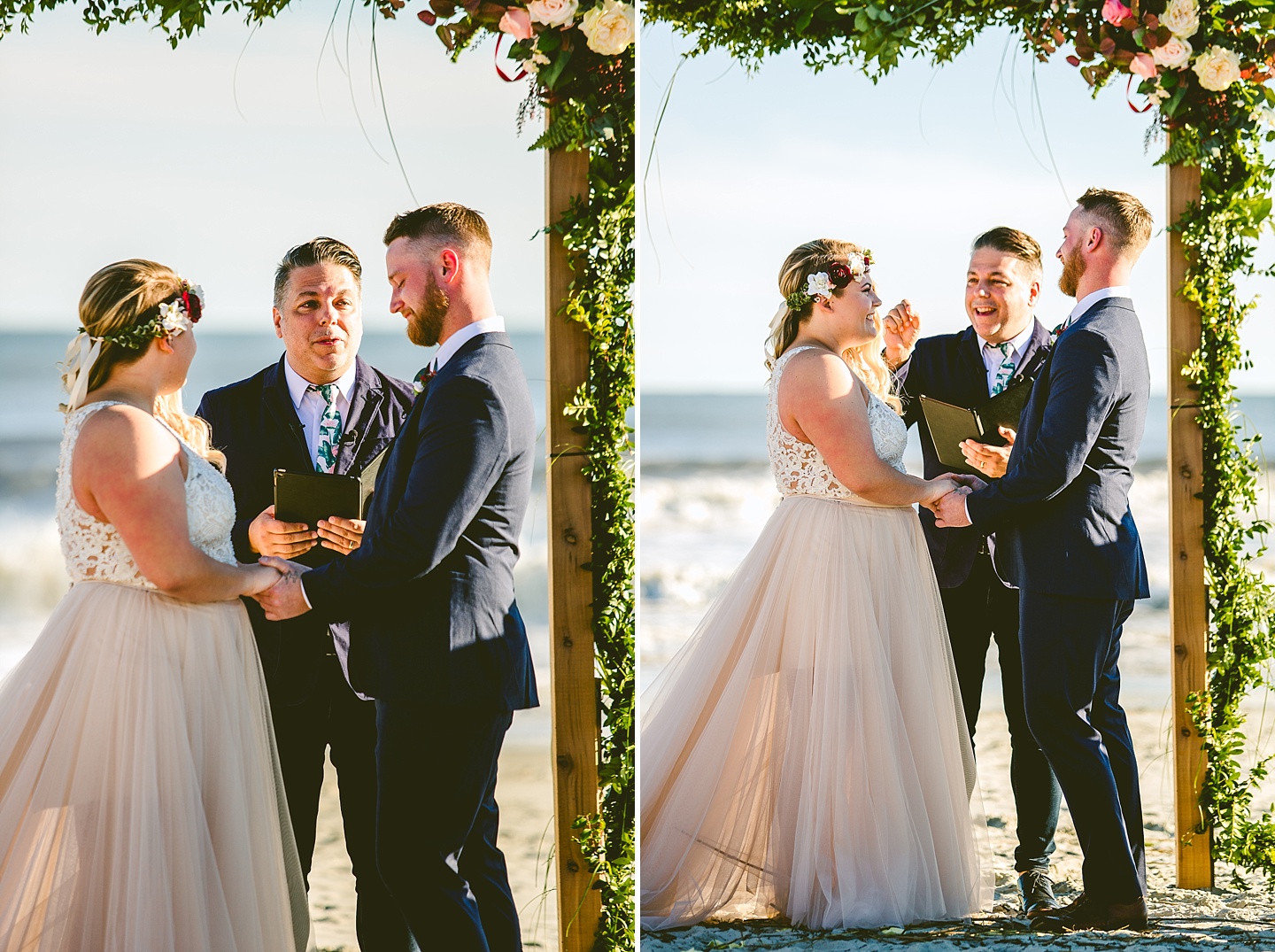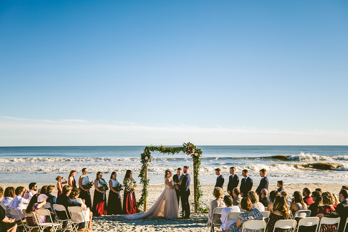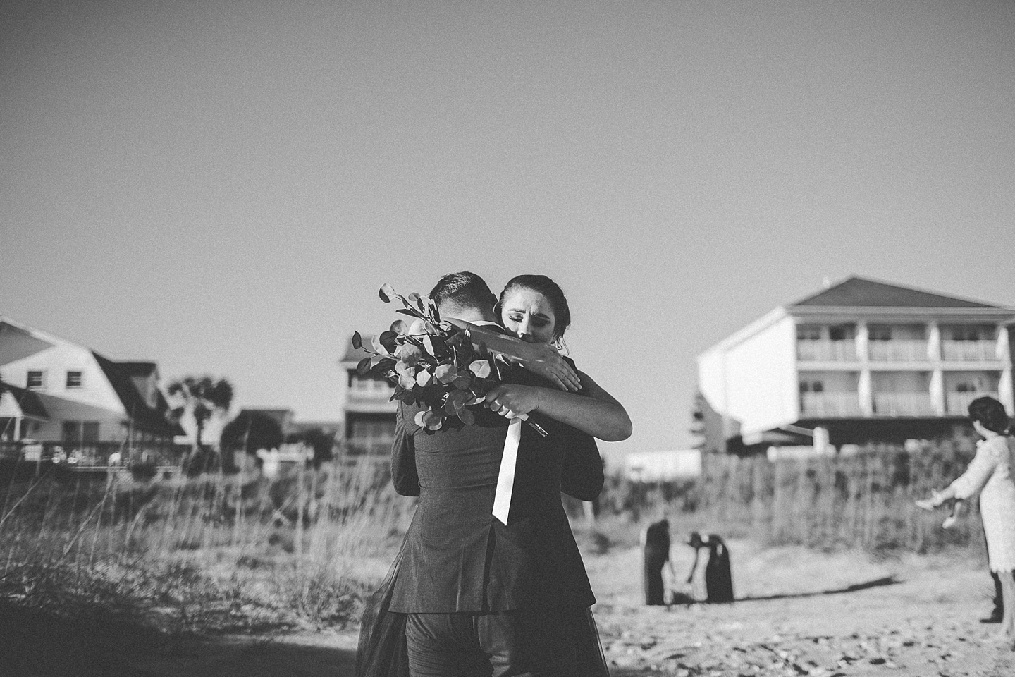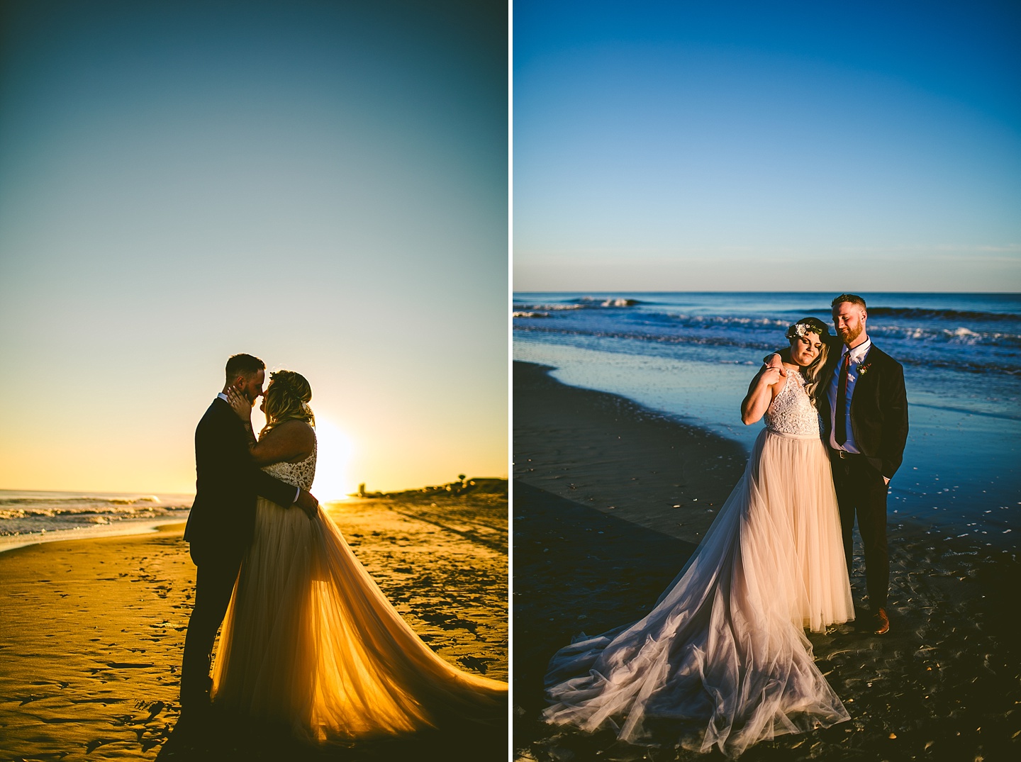 Jessica and Andrew hail all the way up from Minnesota! And, like all Minnesota people I’ve encountered in my lifetime, they are exceedingly nice and can also tolerate much colder temperatures than me. These guys are avid travelers, and they wanted to share the joy of traveling with their family and friends, so they decided to hold their wedding in Ocean Isle, NC and have everyone join them. They rented an enormous and gorgeously updated beach house, and had a ceremony out by the ocean. It was a sunny and clear day while Jess and Andrew strolled along the beach in the sunset with me and videographer Matt from Dogwood Media shouting “Dope dope dope” at them… which is, I’m pretty sure, exactly what they pictured their wedding day being like. We had a ridiculous amount of fun with these guys. And look at how pretty they are. Just look at them. SO PRETTY. Jessica’s dress was gorgeous and I had a fun time making her spin around repeatedly and then trying to shake the sand out of the tulle. They then danced the night away with a super fun group of people who love to pretend they’re all jumping rope at the reception. We are so glad that they asked us to join them out in Ocean Isle – we had never been to that part of the NC coast before (we’re originally from Pittsburgh so still have much of this state to explore) and we loved it! It was clear of people and the light is beautiful out there in November, and the beach is pristine in every direction. We’re so happy and grateful these guys chose North Carolina and chose US to be with them for their wedding day. Congratulations to you both! You beautiful people you.