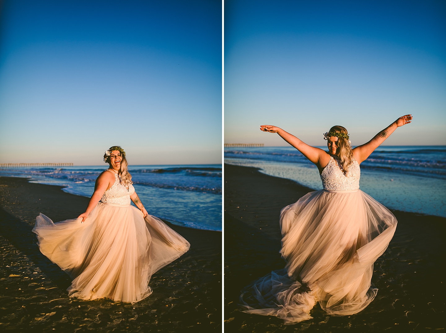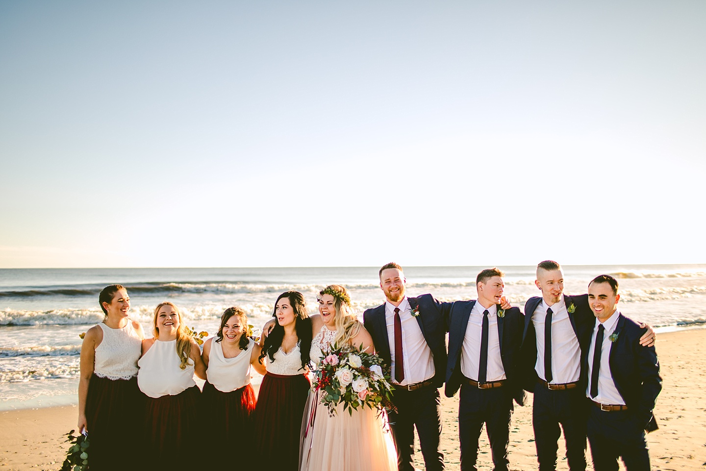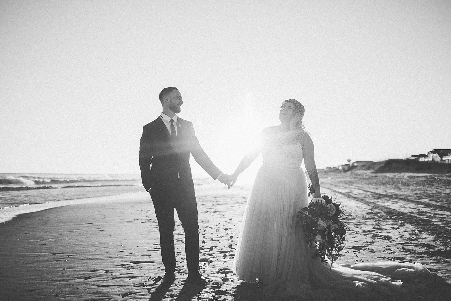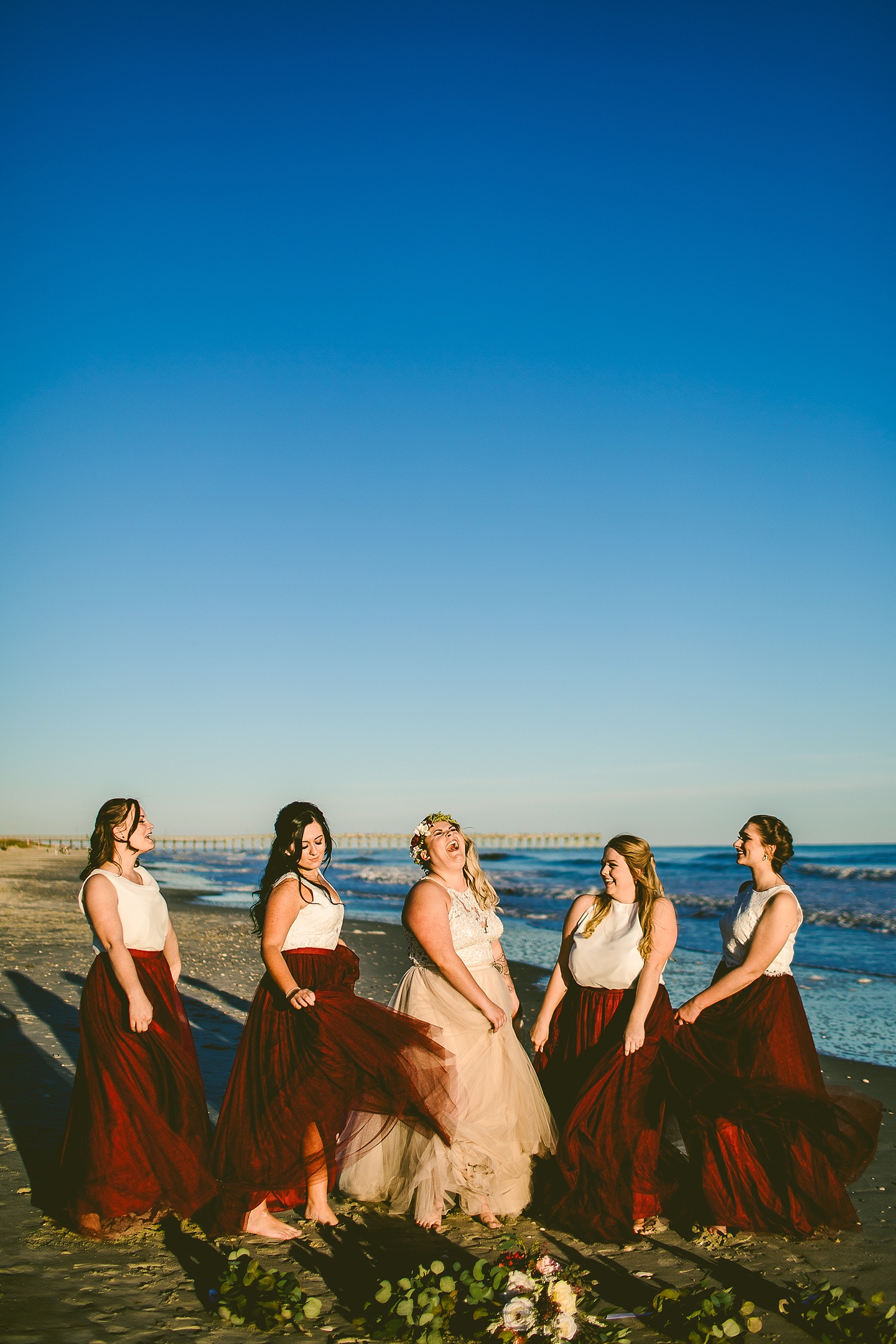 Jessica and Andrew hail all the way up from Minnesota! And, like all Minnesota people I’ve encountered in my lifetime, they are exceedingly nice and can also tolerate much colder temperatures than me. These guys are avid travelers, and they wanted to share the joy of traveling with their family and friends, so they decided to hold their wedding in Ocean Isle, NC and have everyone join them. They rented an enormous and gorgeously updated beach house, and had a ceremony out by the ocean. It was a sunny and clear day while Jess and Andrew strolled along the beach in the sunset with me and videographer Matt from Dogwood Media shouting “Dope dope dope” at them… which is, I’m pretty sure, exactly what they pictured their wedding day being like. We had a ridiculous amount of fun with these guys. And look at how pretty they are. Just look at them. SO PRETTY. Jessica’s dress was gorgeous and I had a fun time making her spin around repeatedly and then trying to shake the sand out of the tulle. They then danced the night away with a super fun group of people who love to pretend they’re all jumping rope at the reception. We are so glad that they asked us to join them out in Ocean Isle – we had never been to that part of the NC coast before (we’re originally from Pittsburgh so still have much of this state to explore) and we loved it! It was clear of people and the light is beautiful out there in November, and the beach is pristine in every direction. We’re so happy and grateful these guys chose North Carolina and chose US to be with them for their wedding day. Congratulations to you both! You beautiful people you.