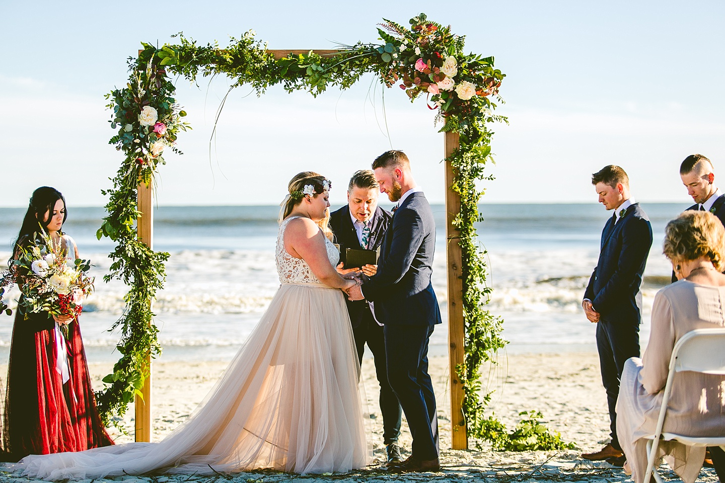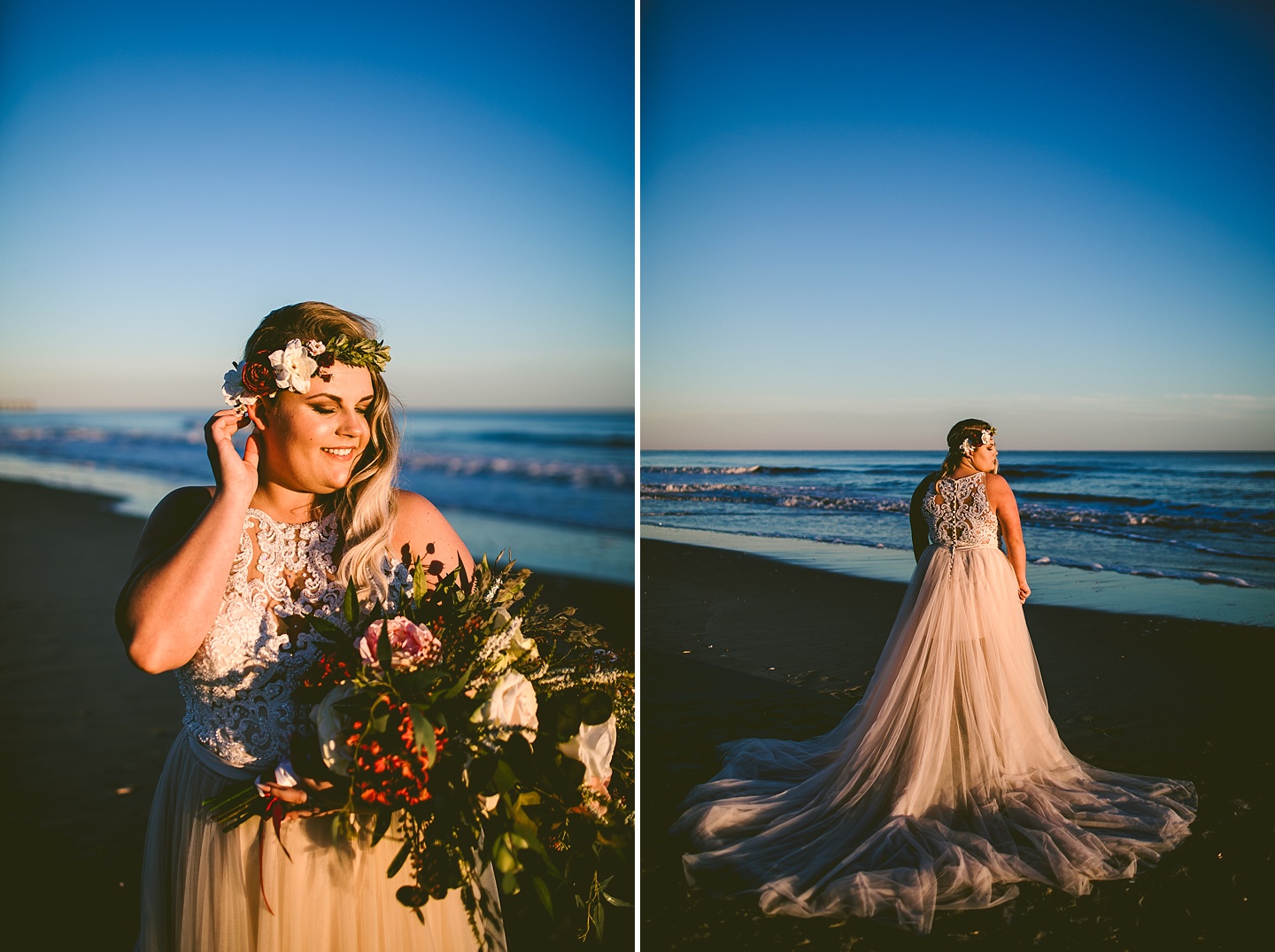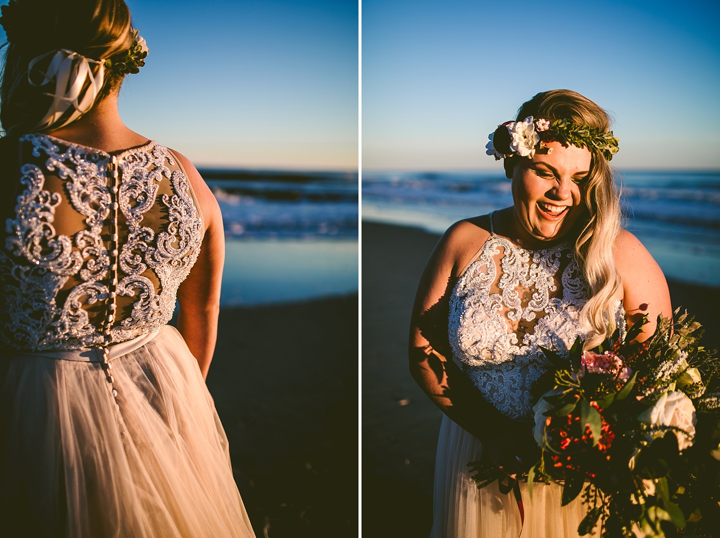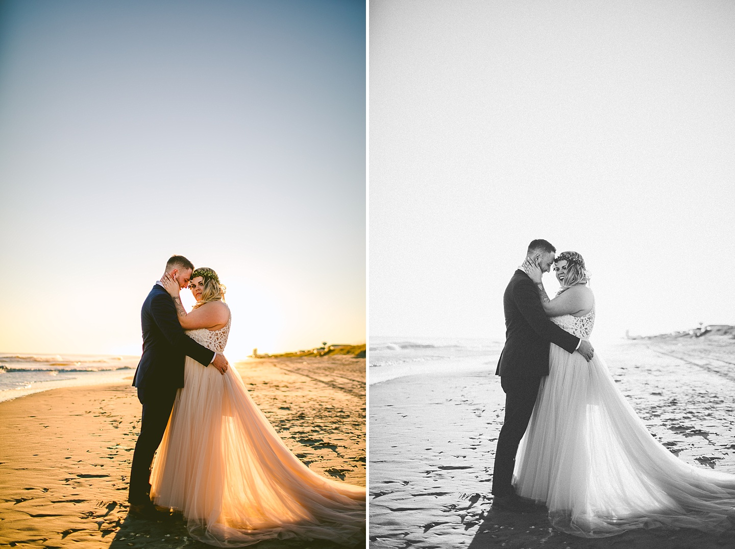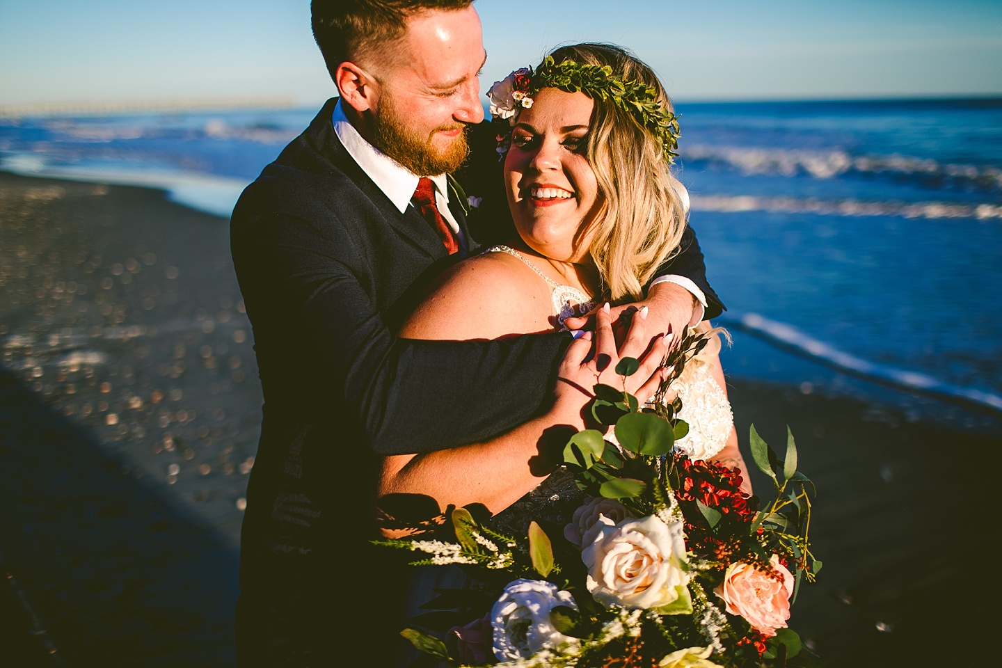 Jessica and Andrew hail all the way up from Minnesota! And, like all Minnesota people I’ve encountered in my lifetime, they are exceedingly nice and can also tolerate much colder temperatures than me. These guys are avid travelers, and they wanted to share the joy of traveling with their family and friends, so they decided to hold their wedding in Ocean Isle, NC and have everyone join them. They rented an enormous and gorgeously updated beach house, and had a ceremony out by the ocean. It was a sunny and clear day while Jess and Andrew strolled along the beach in the sunset with me and videographer Matt from Dogwood Media shouting “Dope dope dope” at them… which is, I’m pretty sure, exactly what they pictured their wedding day being like. We had a ridiculous amount of fun with these guys. And look at how pretty they are. Just look at them. SO PRETTY. Jessica’s dress was gorgeous and I had a fun time making her spin around repeatedly and then trying to shake the sand out of the tulle. They then danced the night away with a super fun group of people who love to pretend they’re all jumping rope at the reception. We are so glad that they asked us to join them out in Ocean Isle – we had never been to that part of the NC coast before (we’re originally from Pittsburgh so still have much of this state to explore) and we loved it! It was clear of people and the light is beautiful out there in November, and the beach is pristine in every direction. We’re so happy and grateful these guys chose North Carolina and chose US to be with them for their wedding day. Congratulations to you both! You beautiful people you.