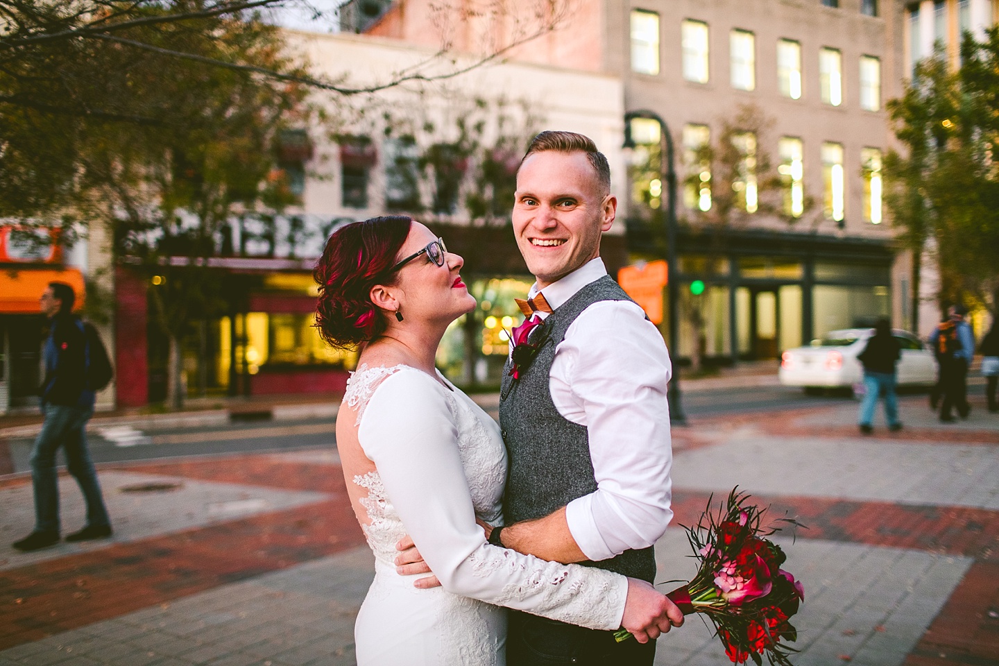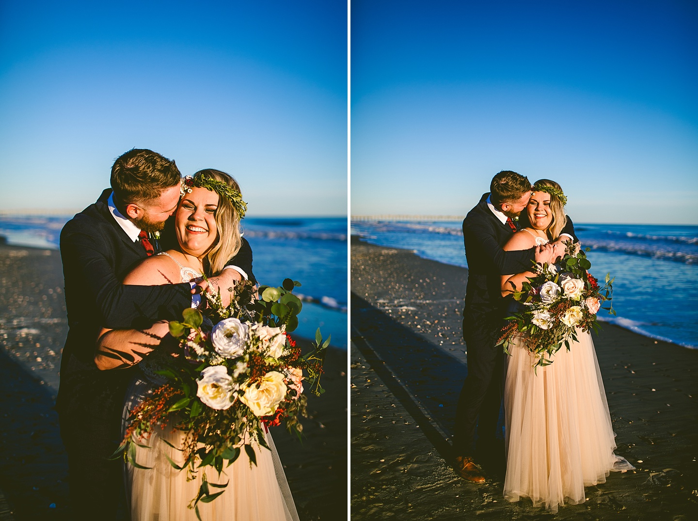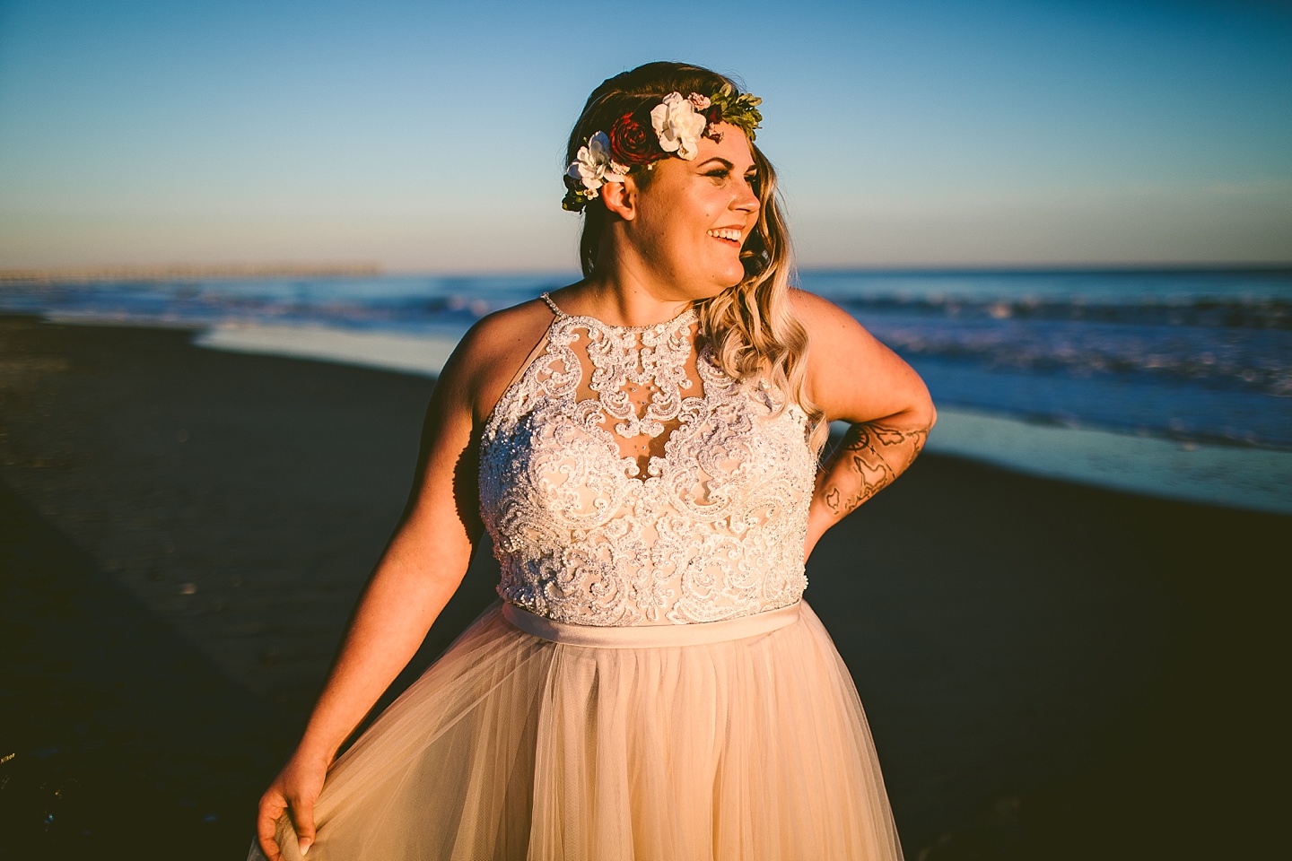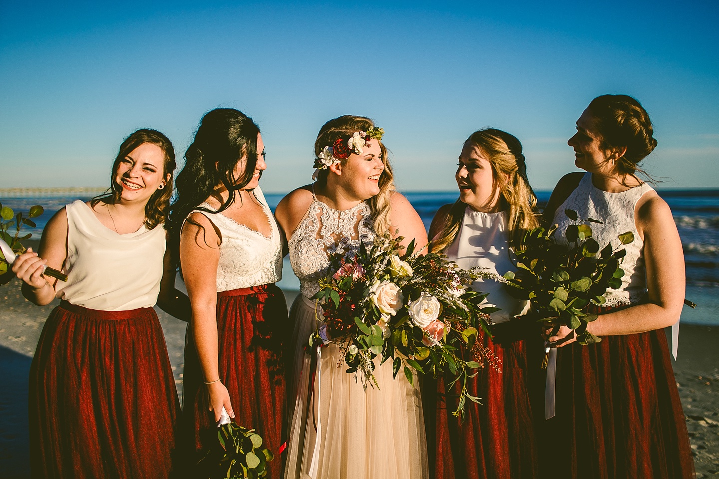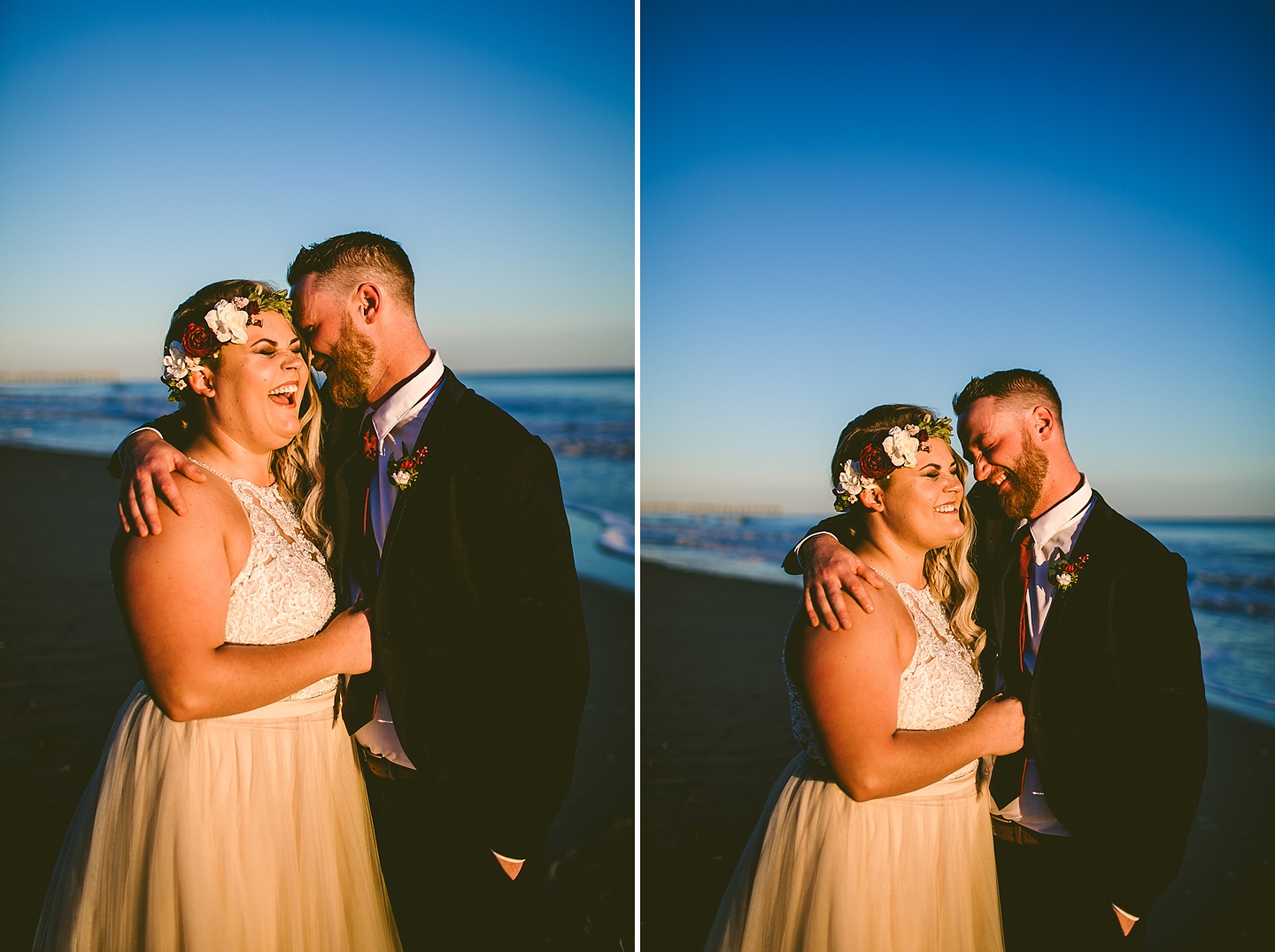 Jessica and Andrew hail all the way up from Minnesota! And, like all Minnesota people I’ve encountered in my lifetime, they are exceedingly nice and can also tolerate much colder temperatures than me. These guys are avid travelers, and they wanted to share the joy of traveling with their family and friends, so they decided to hold their wedding in Ocean Isle, NC and have everyone join them. They rented an enormous and gorgeously updated beach house, and had a ceremony out by the ocean. It was a sunny and clear day while Jess and Andrew strolled along the beach in the sunset with me and videographer Matt from Dogwood Media shouting “Dope dope dope” at them… which is, I’m pretty sure, exactly what they pictured their wedding day being like. We had a ridiculous amount of fun with these guys. And look at how pretty they are. Just look at them. SO PRETTY. Jessica’s dress was gorgeous and I had a fun time making her spin around repeatedly and then trying to shake the sand out of the tulle. They then danced the night away with a super fun group of people who love to pretend they’re all jumping rope at the reception. We are so glad that they asked us to join them out in Ocean Isle – we had never been to that part of the NC coast before (we’re originally from Pittsburgh so still have much of this state to explore) and we loved it! It was clear of people and the light is beautiful out there in November, and the beach is pristine in every direction. We’re so happy and grateful these guys chose North Carolina and chose US to be with them for their wedding day. Congratulations to you both! You beautiful people you.