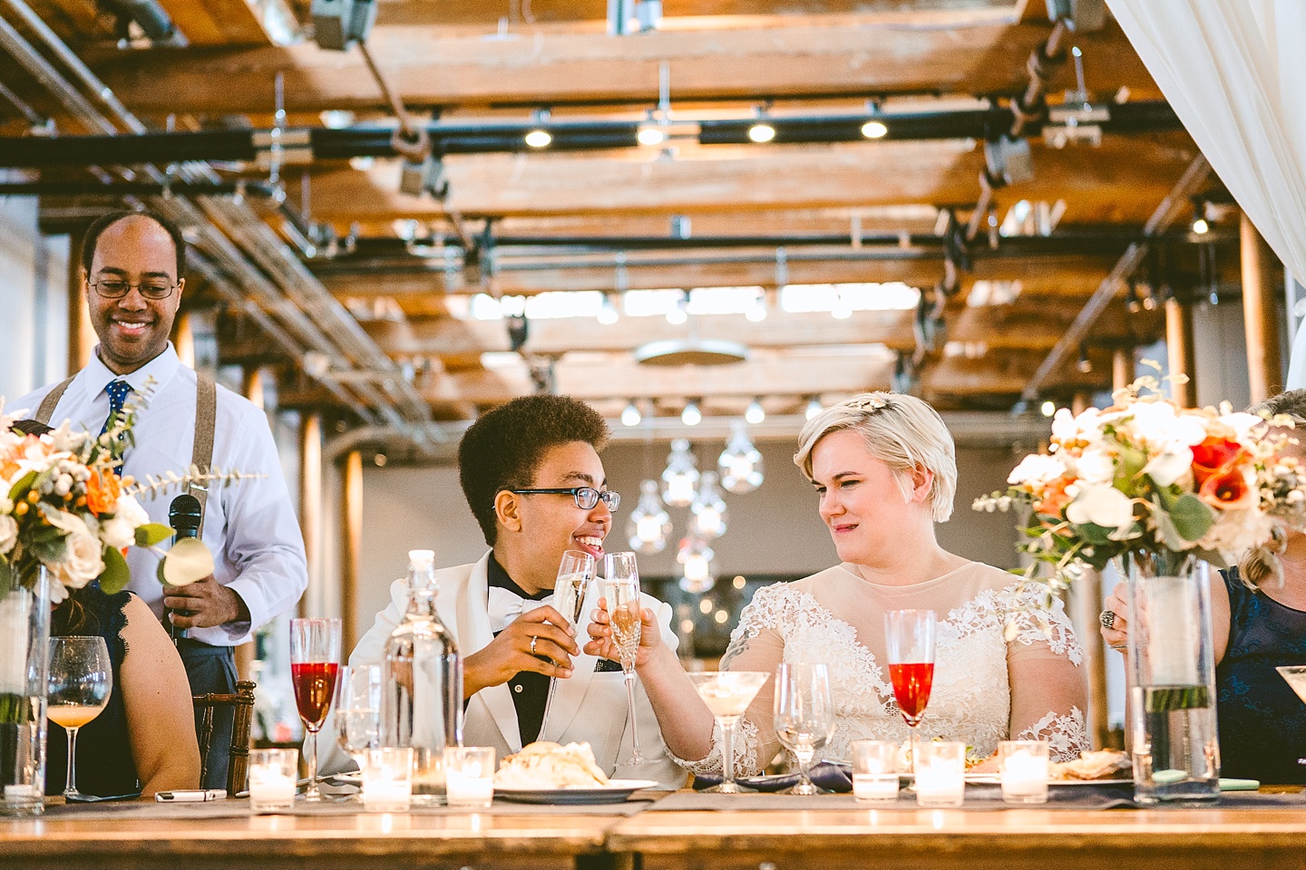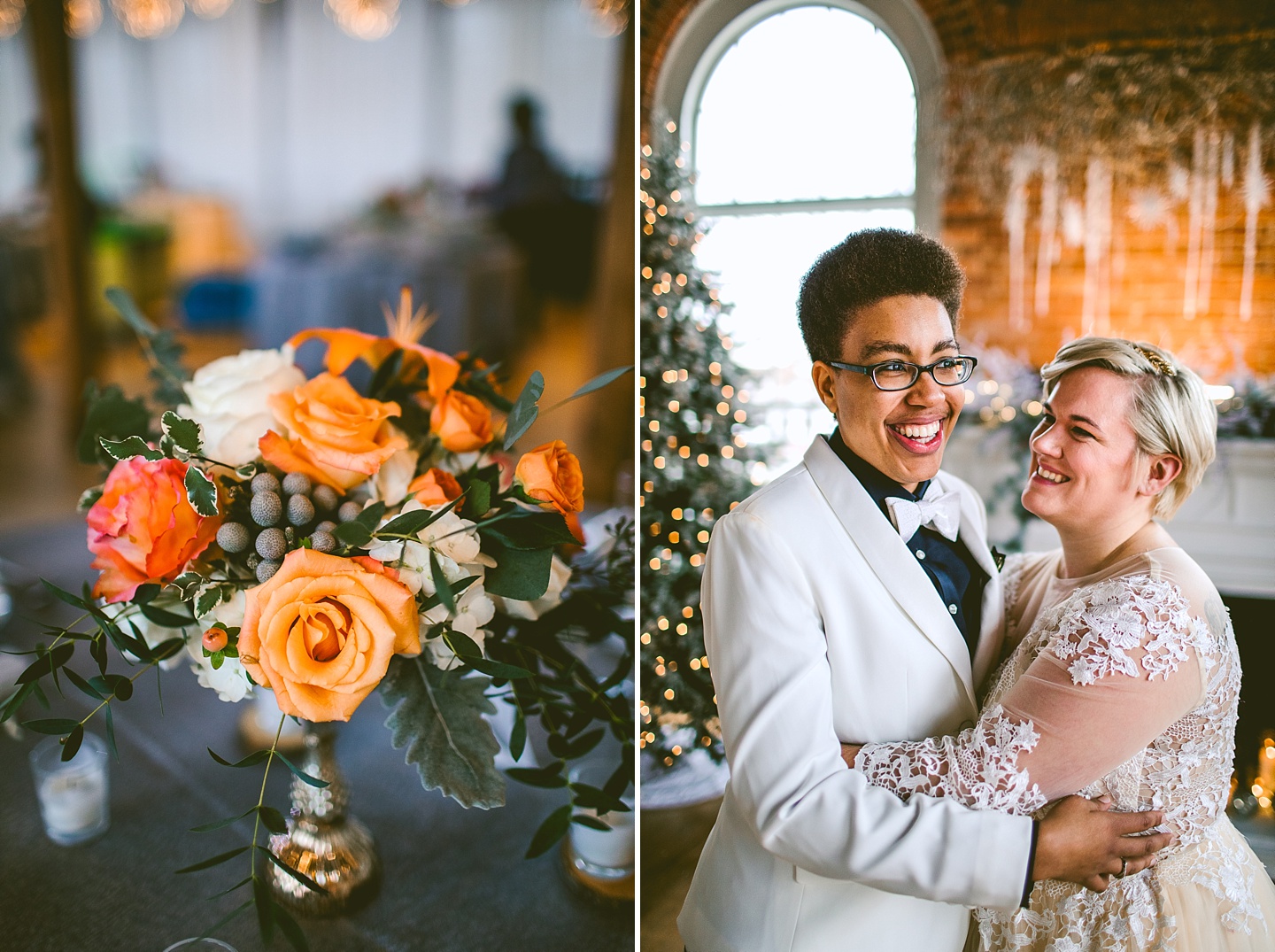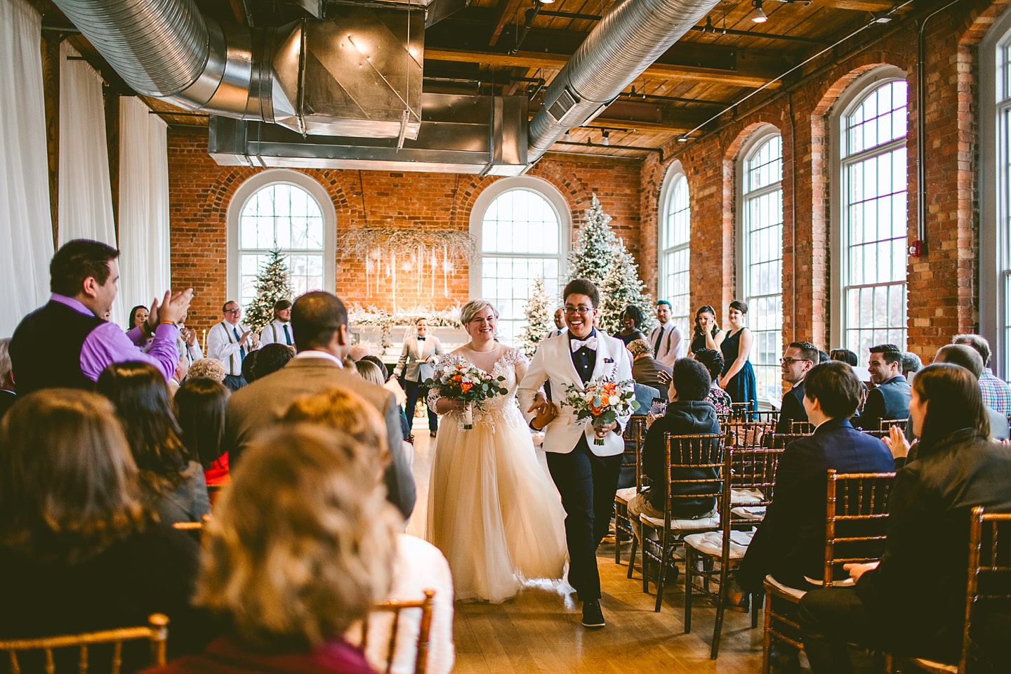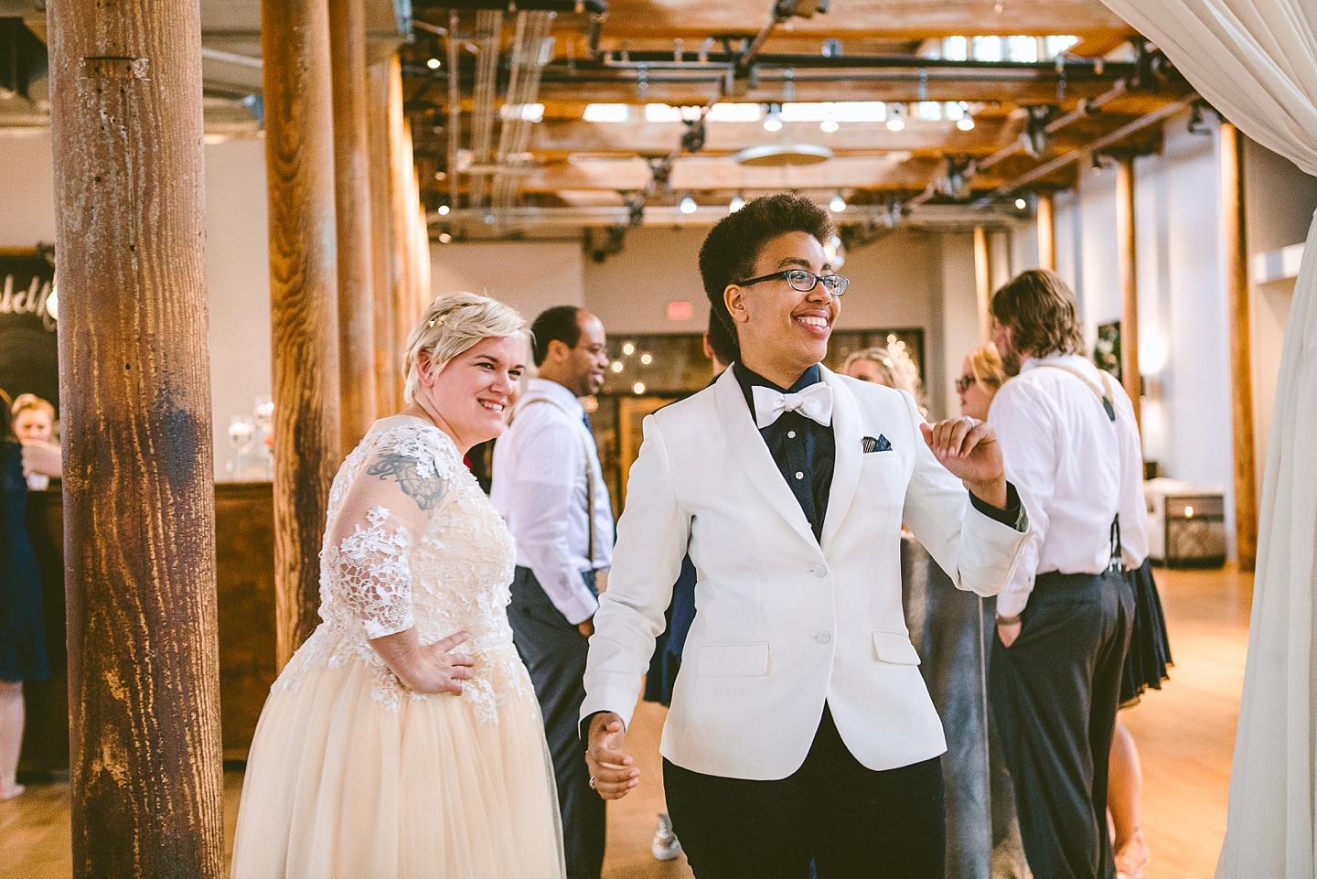 Elizabeth and Catherine did a first look that they were so excited for after keeping everything about their outfits secret from each other for months. They also gave out adorable T-Rex and Narwhal printed glasses as their wedding favors that I’ve been drinking from ever since (I wash it in between drinks, don’t worry). The placecards were little pieces of round wood that Elizabeth engraved by hand, and everywhere you turned there were adorable pictures of them as children (these are my favorite things to look at during weddings). They had a lovely wedding and have a lovely marriage, and we couldn’t be more excited to see these two wonderful people get married. Congrats, Elizabeth and Catherine! We couldn’t have ended our 2017 season on a better note.