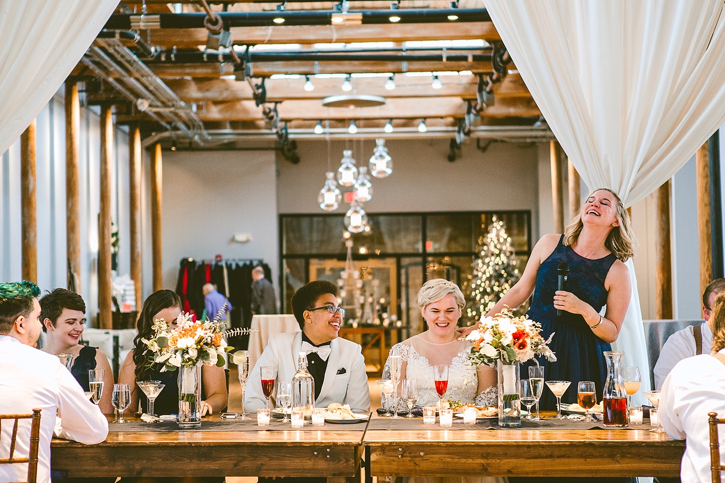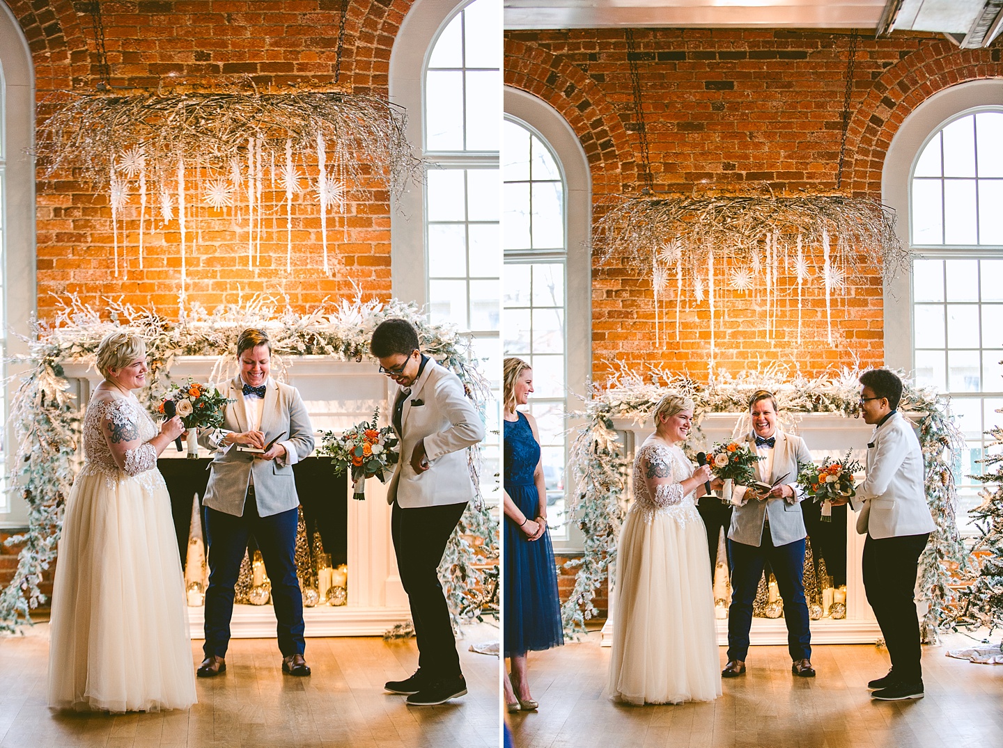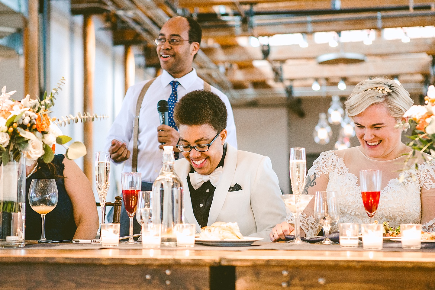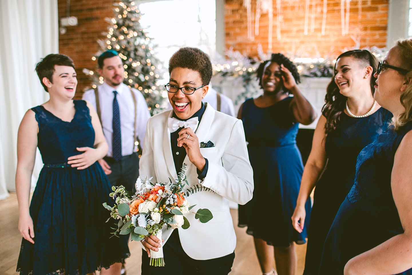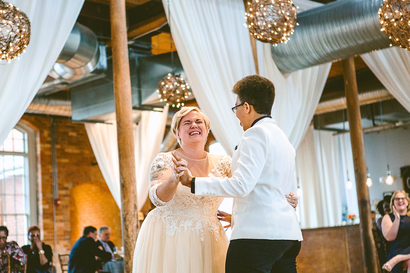 Elizabeth and Catherine did a first look that they were so excited for after keeping everything about their outfits secret from each other for months. They also gave out adorable T-Rex and Narwhal printed glasses as their wedding favors that I’ve been drinking from ever since (I wash it in between drinks, don’t worry). The placecards were little pieces of round wood that Elizabeth engraved by hand, and everywhere you turned there were adorable pictures of them as children (these are my favorite things to look at during weddings). They had a lovely wedding and have a lovely marriage, and we couldn’t be more excited to see these two wonderful people get married. Congrats, Elizabeth and Catherine! We couldn’t have ended our 2017 season on a better note.