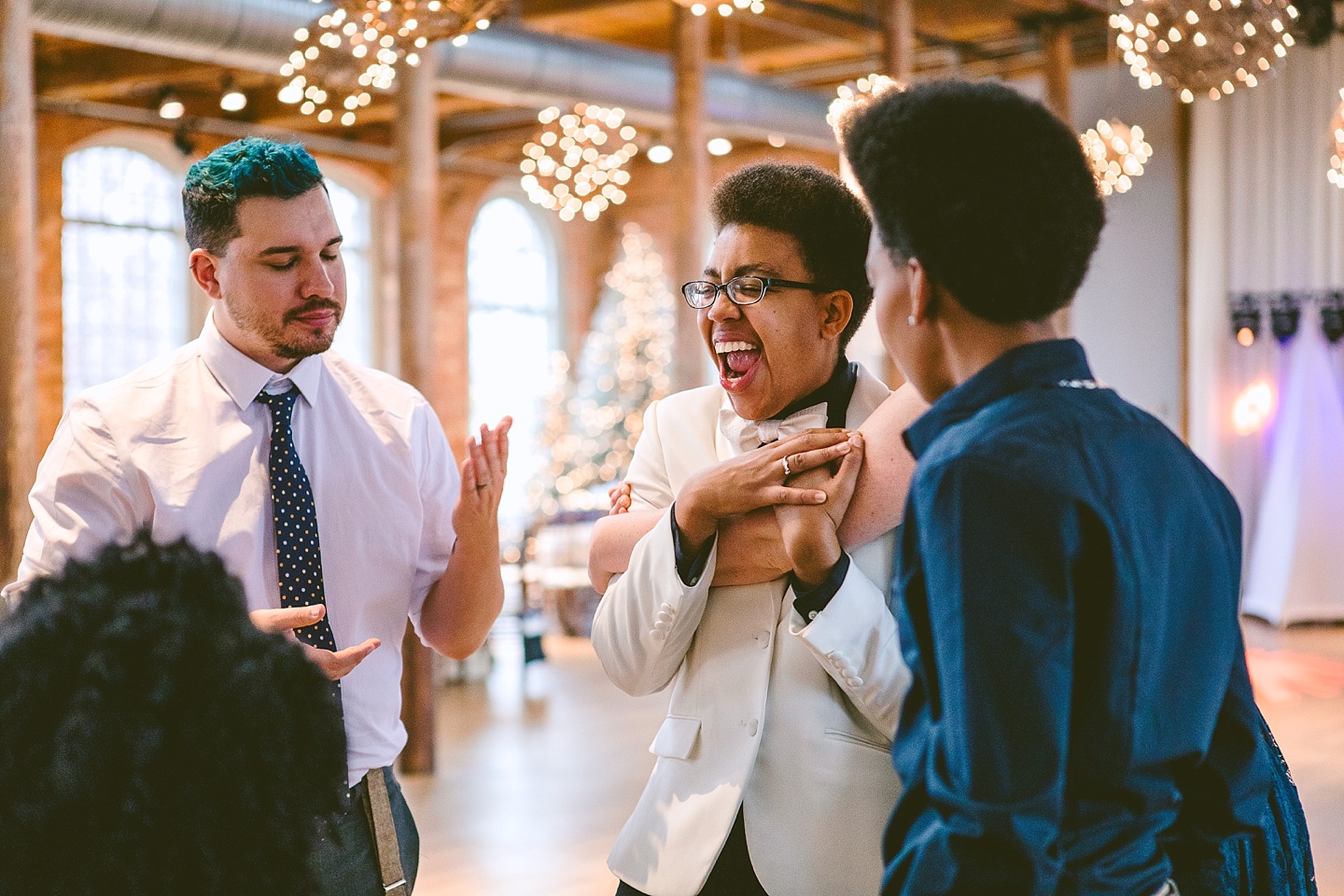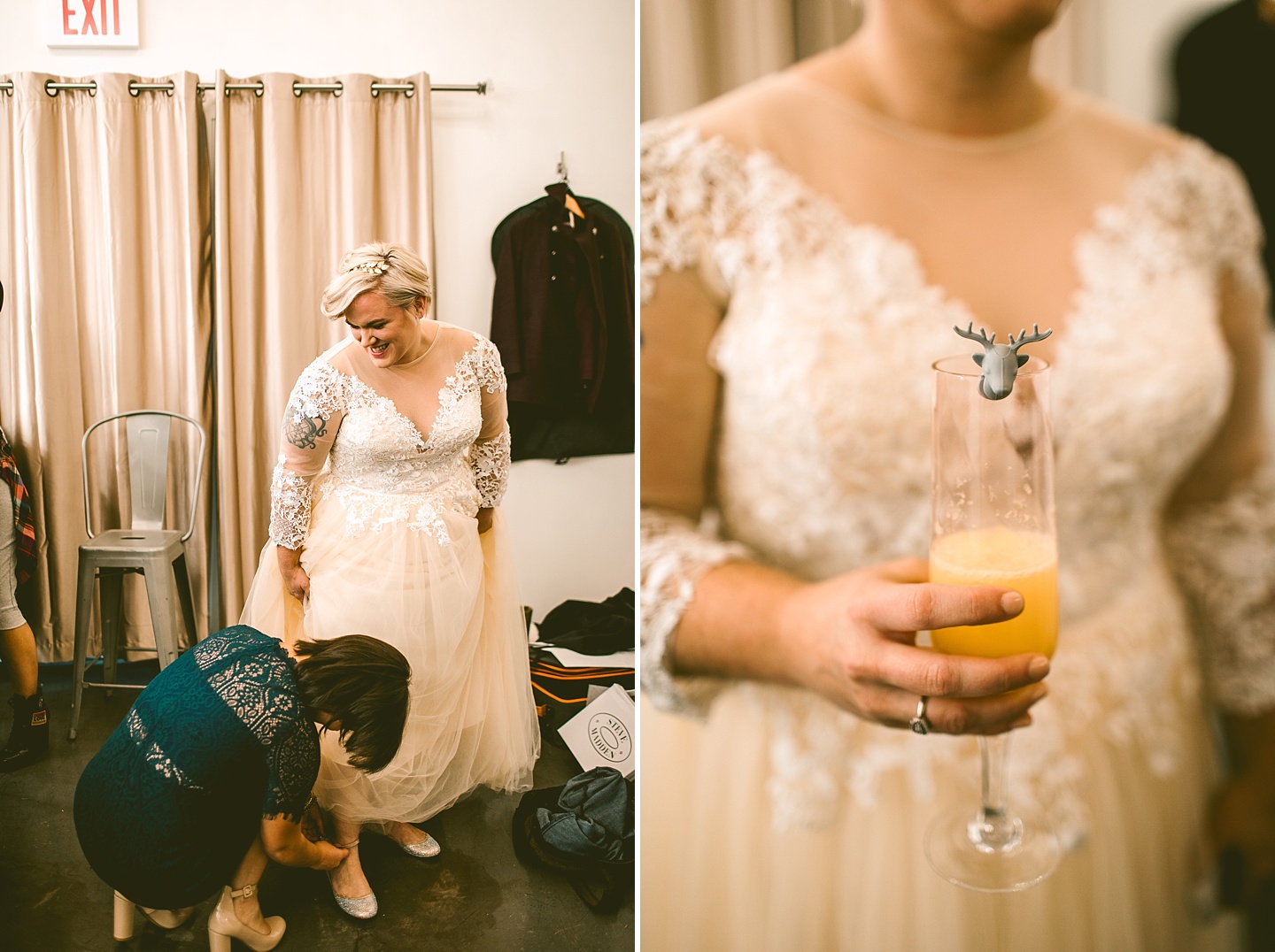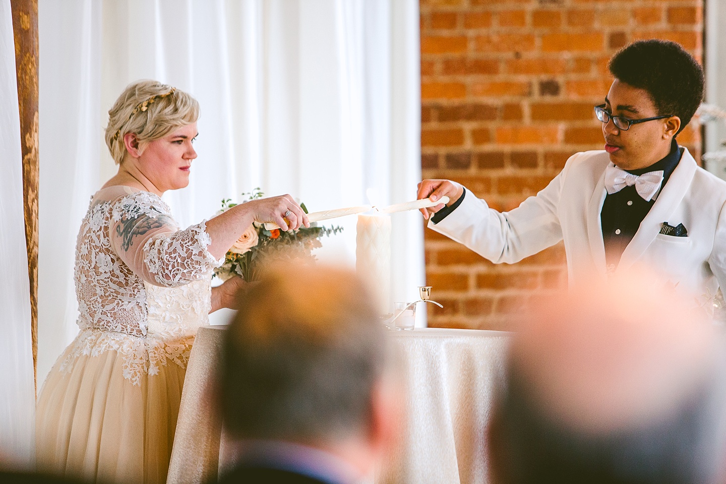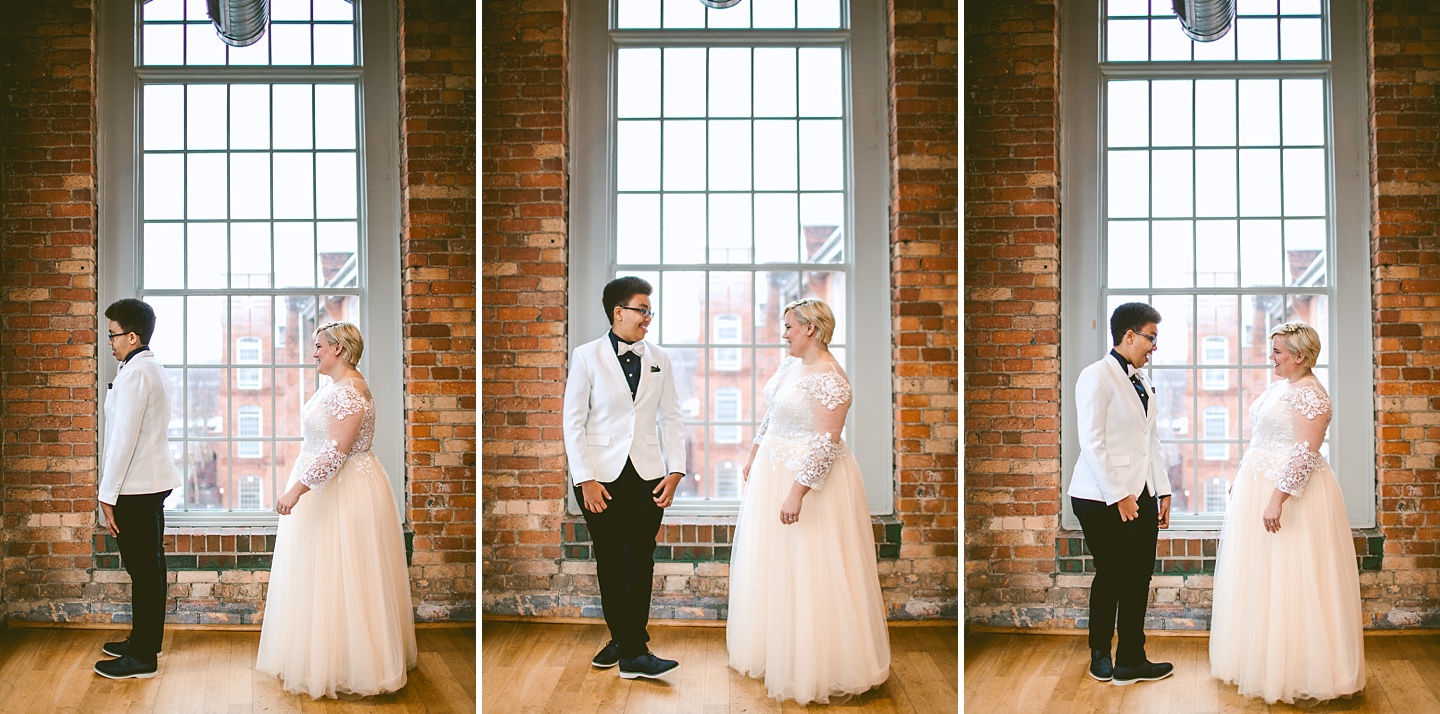 Elizabeth and Catherine did a first look that they were so excited for after keeping everything about their outfits secret from each other for months. They also gave out adorable T-Rex and Narwhal printed glasses as their wedding favors that I’ve been drinking from ever since (I wash it in between drinks, don’t worry). The placecards were little pieces of round wood that Elizabeth engraved by hand, and everywhere you turned there were adorable pictures of them as children (these are my favorite things to look at during weddings). They had a lovely wedding and have a lovely marriage, and we couldn’t be more excited to see these two wonderful people get married. Congrats, Elizabeth and Catherine! We couldn’t have ended our 2017 season on a better note.