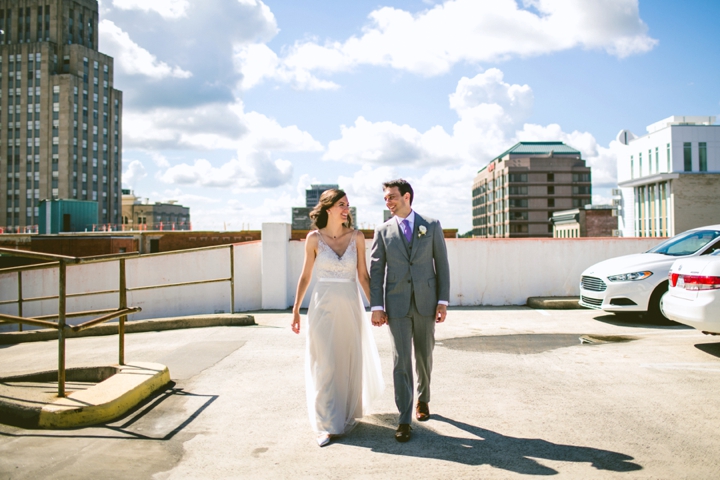 Stephanie and Tim love pizza, Stranger Things, and each other. You may remember them from their engagement session at 21C Museum Hotel that ended with them eating pizza at Pie Pushers. We spent most of that engagement session discussing *spoiler alert* Barb’s untimely end in season one of Stranger Things and how justice might eventually be served… served just like their pizza. And although the jury on justice for Barb is still kinda out, the jury on Stephanie and Tim’s wedding where they also were served pizza again is IN and the jury says “EXCELLENT.” We got special permission from The Durham to shoot on the rooftop as Stephanie and Tim were guests there that evening and the light was purrrdy. Then NC Comic-Con was taking place and lots of fabulous characters graced us with their presence as we did photos downtown. And finally Stephanie and Tim were married in a beautiful indoor ceremony at The Rickhouse, which culminated with pizza and ice cream, which is the married dinner of champions.