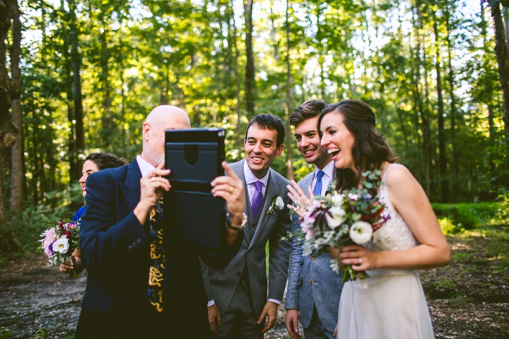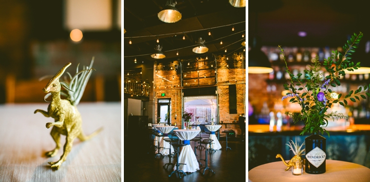 Lauren and Kris had all the necessary things for a delightful wedding: donuts, a jazz band, an ice cream truck, a crazy little biodiesel bus, and a phone full of pictures of their cat Calvin using Snapchat wearing a fedora and a fake mustache. They were married by a friend in a little intimate spot of grass in the middle of Duke Forest surrounded by trees and fabulous early fall light. Then we all went on to the reception at The Cookery that was adorned with little golden dinosaurs sporting air plants that were standing guard over bottles of liquor holding wildflowers. I really wanted to steal all of them and start a tiny gold dinosaur plant army but I couldn’t do that because Lauren and Kris are so nice and I feel like it’s probably good luck for your marriage if you start out with your own golden dinosaur plant army and I didn’t want to rob them of that.