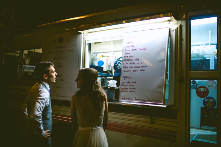 – Vendor Credits: Officiant – Rebekah Perno // DJ – Barry of Be Digital Entertainment // Florist – Brandi’s Botanicals // Cake – Kristen Sherman // Caterer – Happy Cardinal Catering // Hair – Lane Clements // Make-Up – Lauren Tedino // Coordinator – Amanda Buchanan of Simple Day // Lighting – Vivid Lighting // Ice Cream – The Parlour // Calligrapher – Marika Wendelken